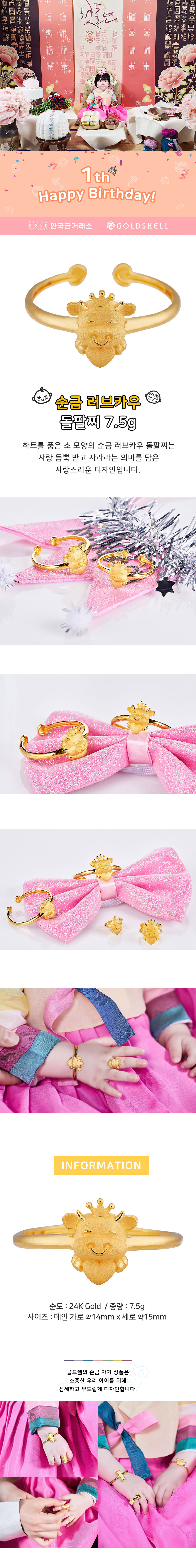 순금 러브카우 돌팔찌 7.5g